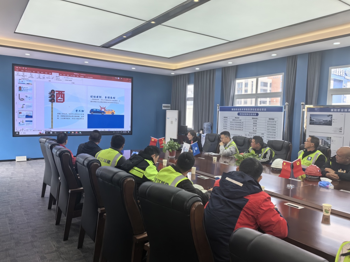 圖為漢江城建紀(jì)委對(duì)襄陽職業(yè)技術(shù)學(xué)院東津校區(qū)、襄陽技師學(xué)院二期工程項(xiàng)目一線全體管理人員開展酒醉駕專題警示教育