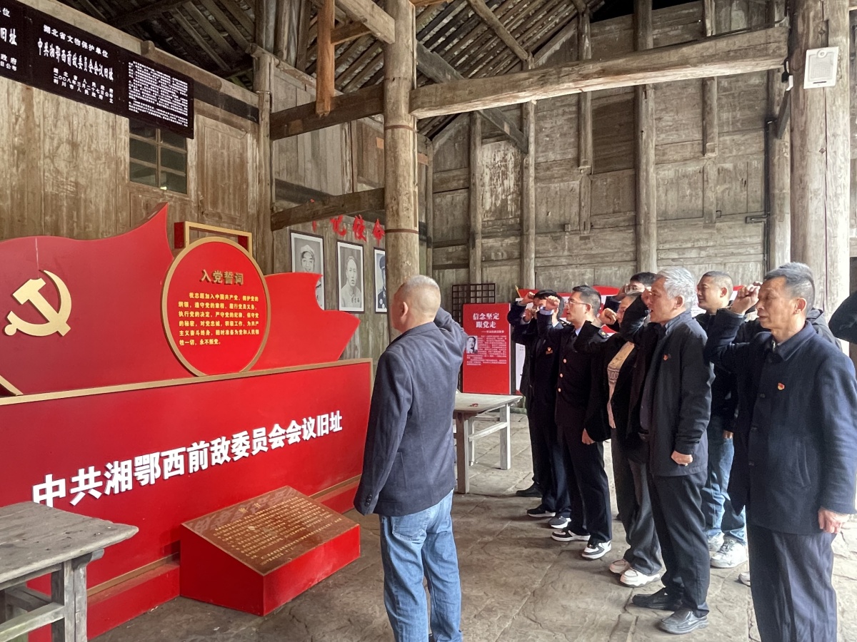 活動(dòng)中,在講解員的帶領(lǐng)下,雙方黨員干部共同參觀了中共湘鄂西前敵委員會(huì)舊址的5個(gè)展廳,通過(guò)聆聽(tīng)紅色故事、緬懷革命先烈、尋覓紅色足跡,汲取前進(jìn)力量。在舊址前,長(zhǎng)干村村委會(huì)主任帶領(lǐng)全體黨員重溫入黨誓詞,追憶入黨初心,提升黨性修養(yǎng)。