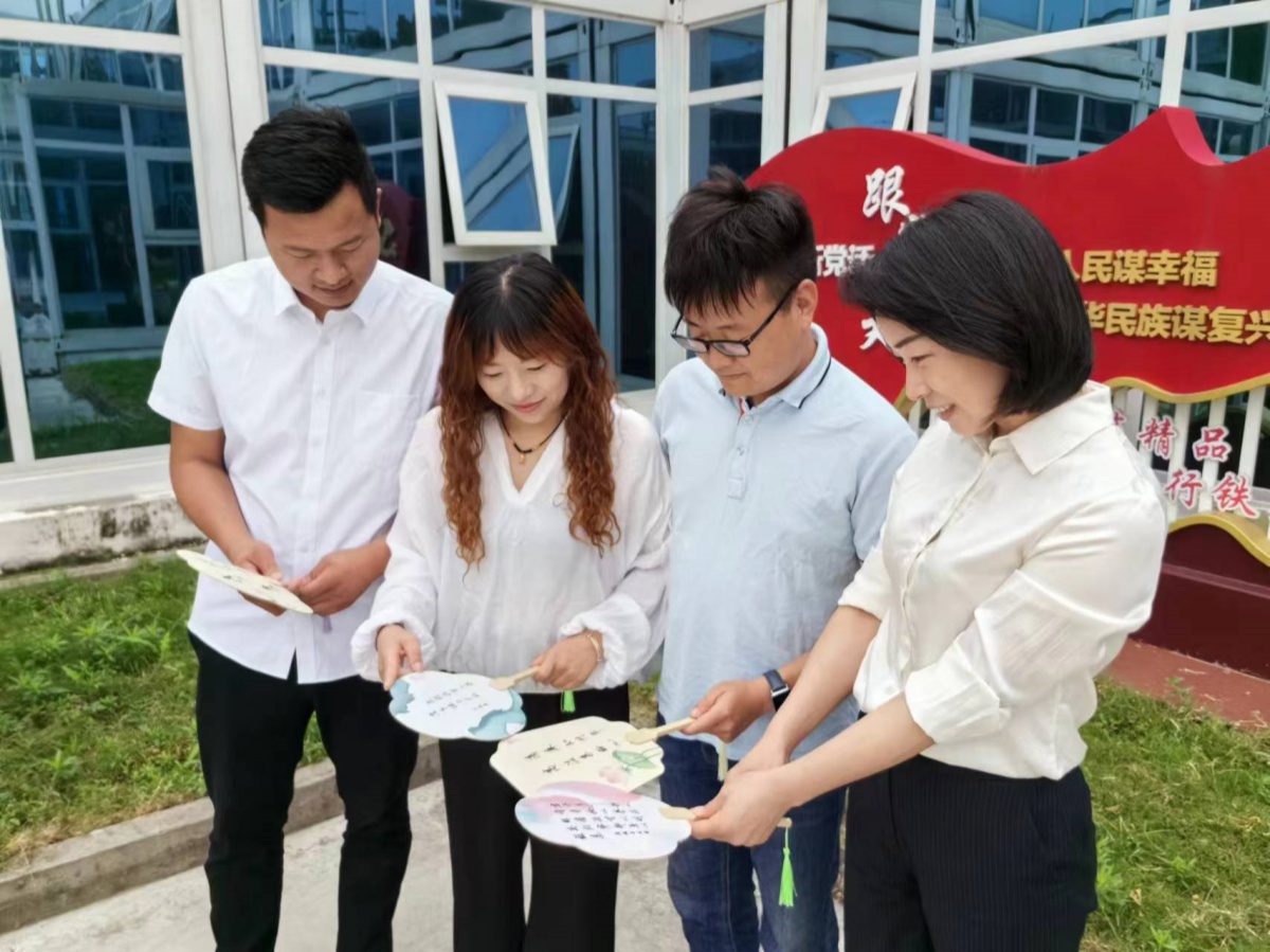 圖為:交安公司組織開展的“筆墨書清廉 團扇送清風”活動現(xiàn)場