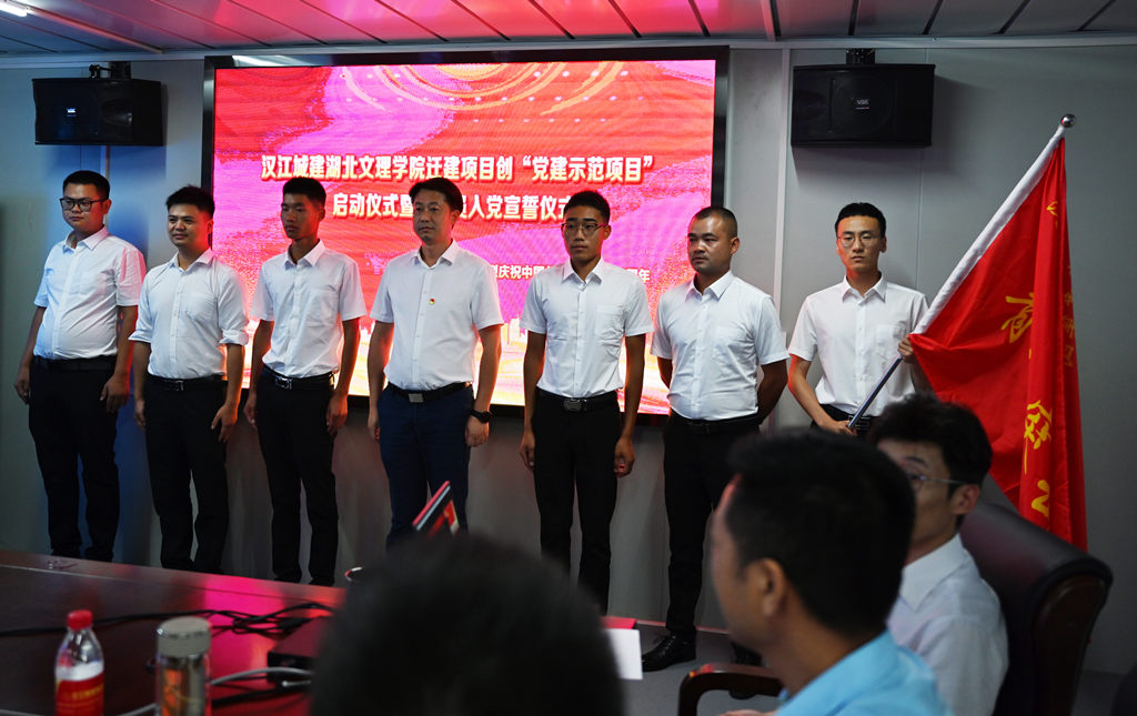 為熱烈慶祝中國(guó)共產(chǎn)黨百年華誕,7月1日下午,漢江城建黨委領(lǐng)導(dǎo)帶領(lǐng)各支部書記、各分(子)公司經(jīng)理約20余人赴湖北文理學(xué)院遷建項(xiàng)目部與項(xiàng)目部黨員及管理人員共同舉辦主題黨建活動(dòng)。本次活動(dòng)主要圍繞湖北文理學(xué)院遷建項(xiàng)目創(chuàng)“黨建示范項(xiàng)目”啟動(dòng)儀式暨新黨員入黨宣誓儀式展開。