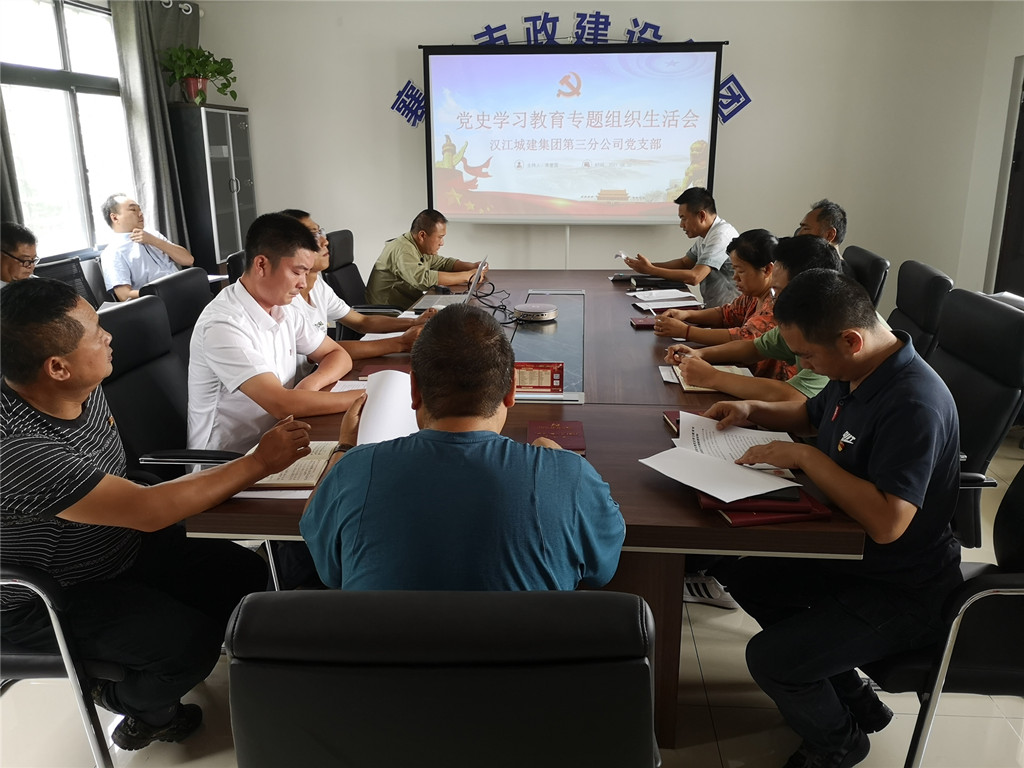 8月20日上午,漢江城建第三分公司黨支部以“學黨史、悟思想、辦實事、開新局”為主題,召開了黨史學習教育專題組織生活會。