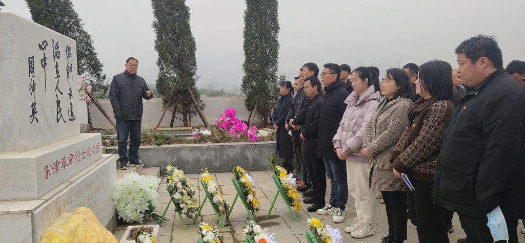 青山有幸埋忠骨,銘記歷史祭英魂。在支部書記的主持下,大家懷著對烈士們無限崇敬的心情,整齊列隊(duì)來到烈士陵園,為長眠于此的革命先烈獻(xiàn)上著無限哀思的花籃,并在歷史紀(jì)念碑前集體低頭默哀;接著由黨員代表余昊陽同志帶領(lǐng)大家重溫入黨誓詞,入黨積極分子代表肖陳同志,共青團(tuán)員代表王強(qiáng)同志分別進(jìn)行了發(fā)言,兩名同志代表都表達(dá)了對革命先烈的哀思,弘揚(yáng)了英烈精神,立志爭做時(shí)代先鋒,發(fā)揚(yáng)黨員、青年職工的先鋒模范作用。