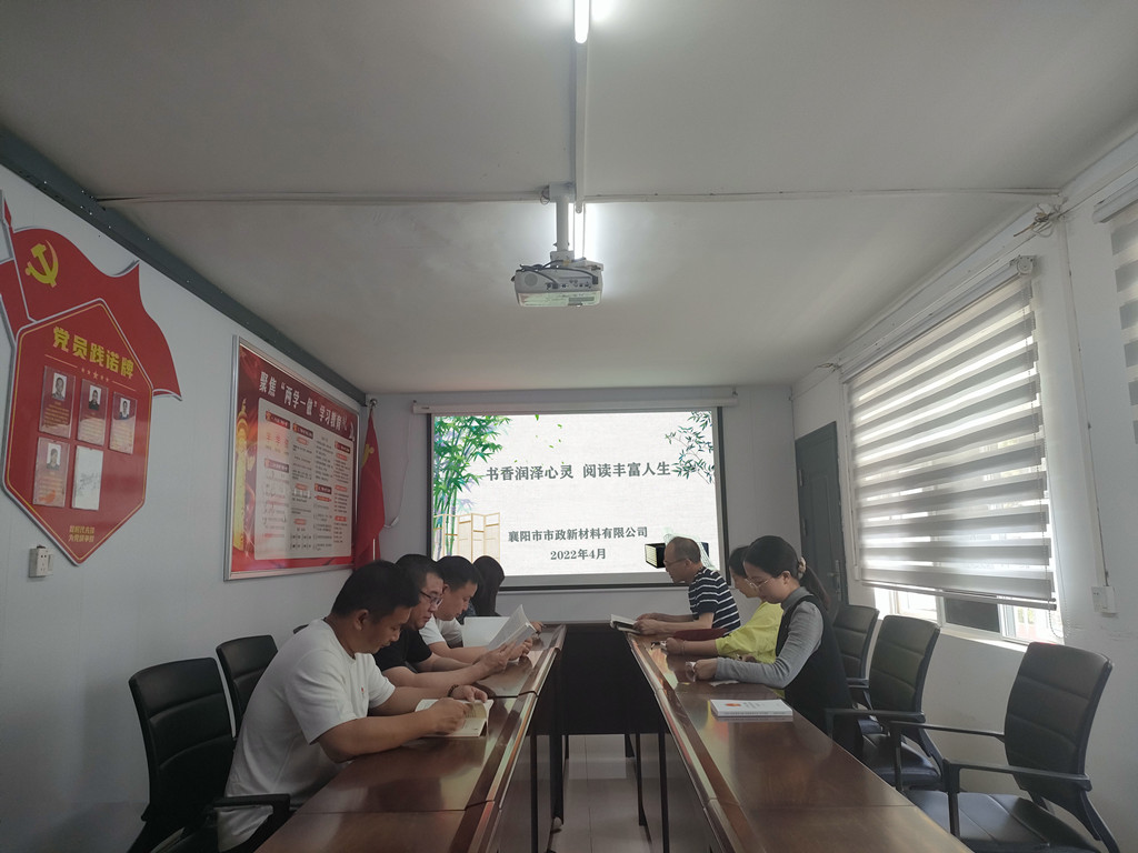 為了提前迎接“世界讀書日”,進(jìn)一步弘揚(yáng)尊重知識(shí)、崇尚文明的閱讀理念,4月13日下午,新材料公司率先組織開展了以“書香潤澤心靈,閱讀豐富人生”為主題的讀書活動(dòng);顒(dòng)由新材料公司黨支部書記孔慶銳同志主持,全體黨員同志和部分員工參加了此次學(xué)習(xí)活動(dòng)。