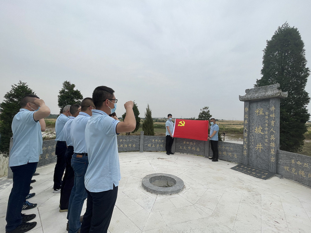 活動中全體黨員在烈士雕像前敬獻(xiàn)了花籃、集體默哀緬懷烈士。在程坡井前,黨員同志們面向鮮紅的黨旗再次重溫了入黨誓詞。來向東同志結(jié)合本次活動主題給大家上了一堂生動的黨課。他講到,程克繩將軍的一生是敢于斗爭、善于斗爭、不懈斗爭的一生、是為了人民、依靠人民、奉獻(xiàn)人民的一生。這種紅色家風(fēng)是我們黨永不褪色的“傳家寶”。黨員同志們深受鼓舞,紛紛表示,時刻牢記入黨誓言,要繼續(xù)發(fā)揚(yáng)先輩們勇于擔(dān)當(dāng),敢于創(chuàng)新,樂于奉獻(xiàn)的精神,把紅色信念化作奮發(fā)進(jìn)取的力量源泉,立足本職,不忘初心,以自己的實(shí)際行動為公司高質(zhì)量發(fā)展再做新貢獻(xiàn)。