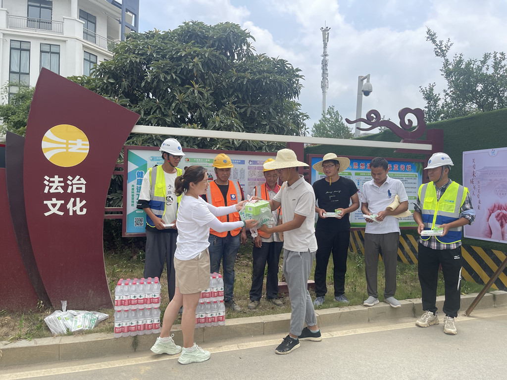 近日持續(xù)高溫天氣,市政工程公司為推進(jìn)“下基層、察民情、解民憂、暖民心”實(shí)踐活動(dòng),保障施工一線人員的安全健康,有效地促進(jìn)安全生產(chǎn)經(jīng)營(yíng),及時(shí)采取高溫天氣應(yīng)對(duì)措施,認(rèn)真做好職工防暑降溫工作。6月18日,經(jīng)理來(lái)向東、支部書記程健帶領(lǐng)慰問(wèn)組分赴各在建項(xiàng)目現(xiàn)場(chǎng),慰問(wèn)在高溫酷暑下仍?shī)^戰(zhàn)一線的施工人員,并親自為他們送上礦泉水、風(fēng)油精、防暑降溫藥品等物資,把組織對(duì)員工的關(guān)懷送到心坎上,在炎炎夏日中為大家送上一份清涼和暖心,感謝他們?yōu)楣景l(fā)展所做出的奉獻(xiàn)。
