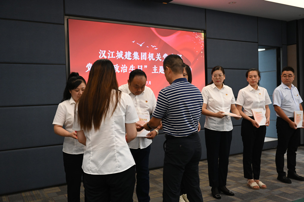 在實(shí)踐鍛煉環(huán)節(jié),黨支部組織7月份加入中國共產(chǎn)黨的黨員同志集體過“政治生日”。黨委副書記、副董事長、總經(jīng)理蔡軍分別向6名過“政治生日”的黨員同志贈(zèng)送了“政治生日”賀卡,以及黨史書籍等生日禮物。沈玲莉、陳輝、丁萌3名同志作為黨員代表,圍繞“三憶三問三思”發(fā)表政治生日感言,從個(gè)人成長、工作經(jīng)歷、對黨性的感悟等方面,分享了自己入黨的心路歷程,用樸素的語言、真摯的情感表達(dá)了愛黨愛國的熱情,表示將堅(jiān)定理想信念,以此次政治生日為新起點(diǎn),繼續(xù)用實(shí)際行動(dòng)銘記入黨初心,踐行全心全意為人民服務(wù)的使命。